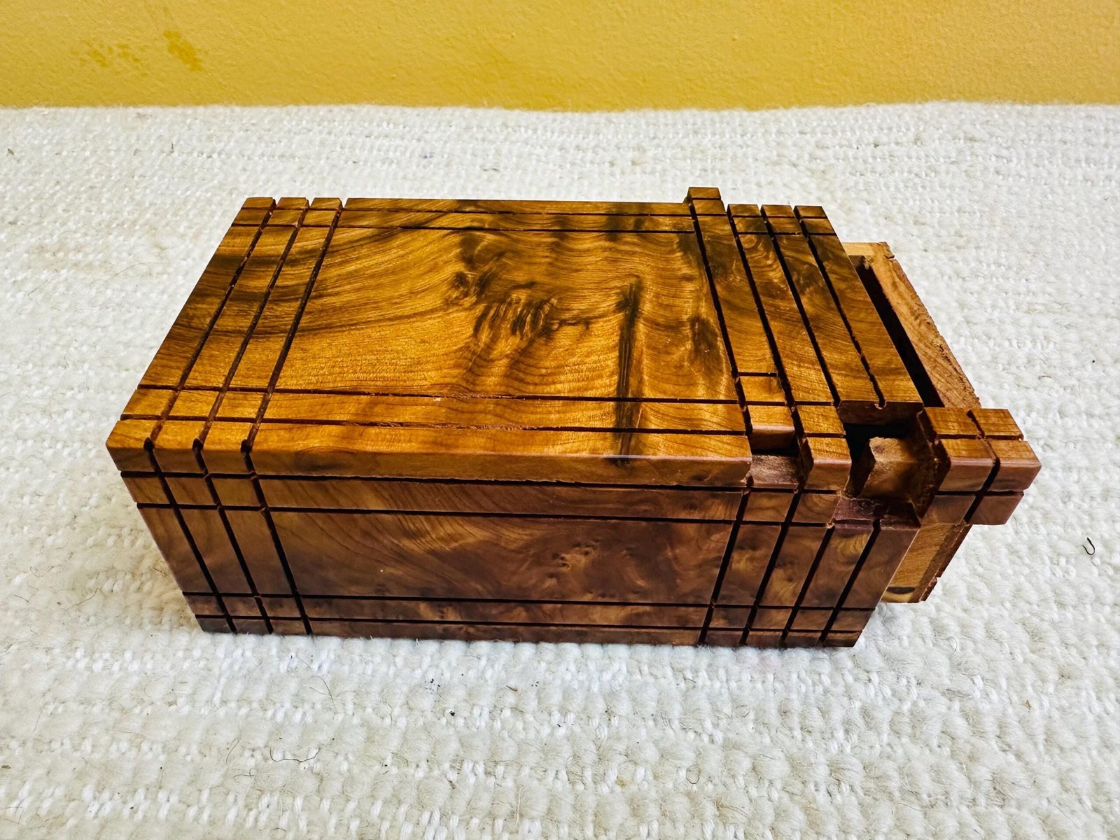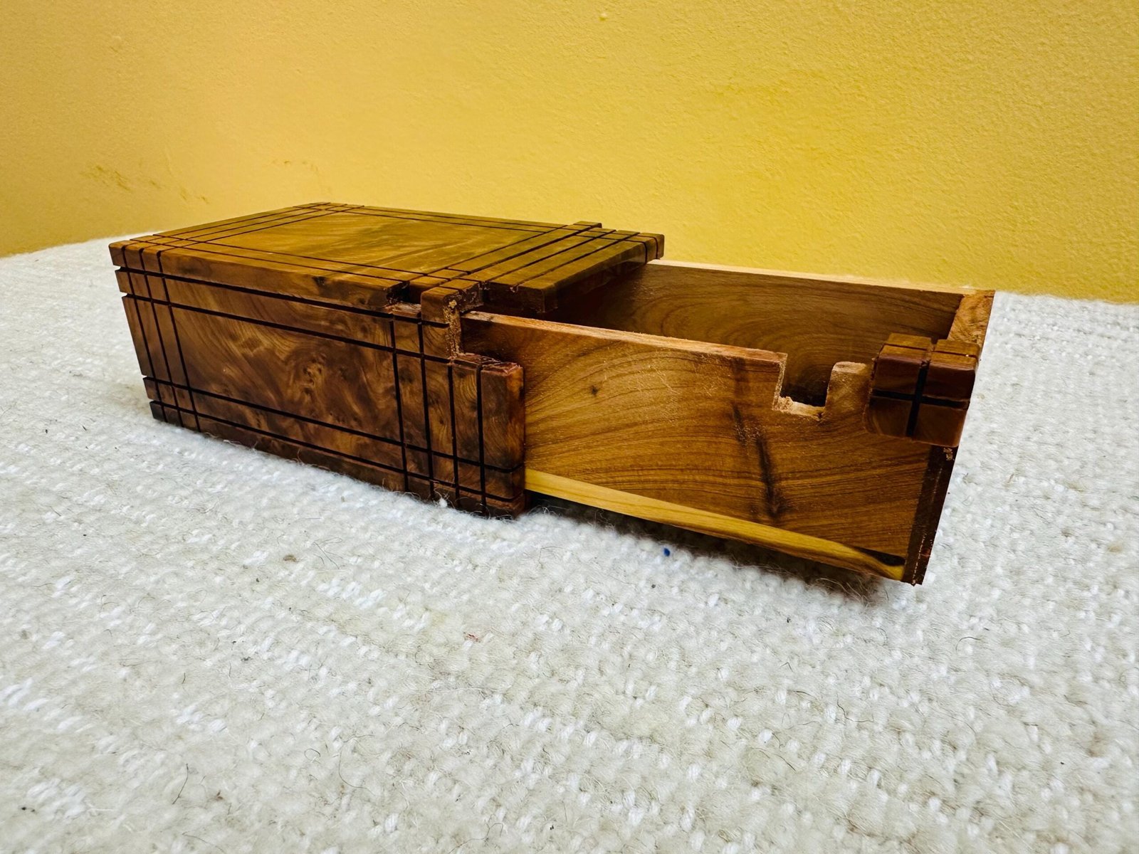 • Style: Artisan woodwork / hidden storage puzzle