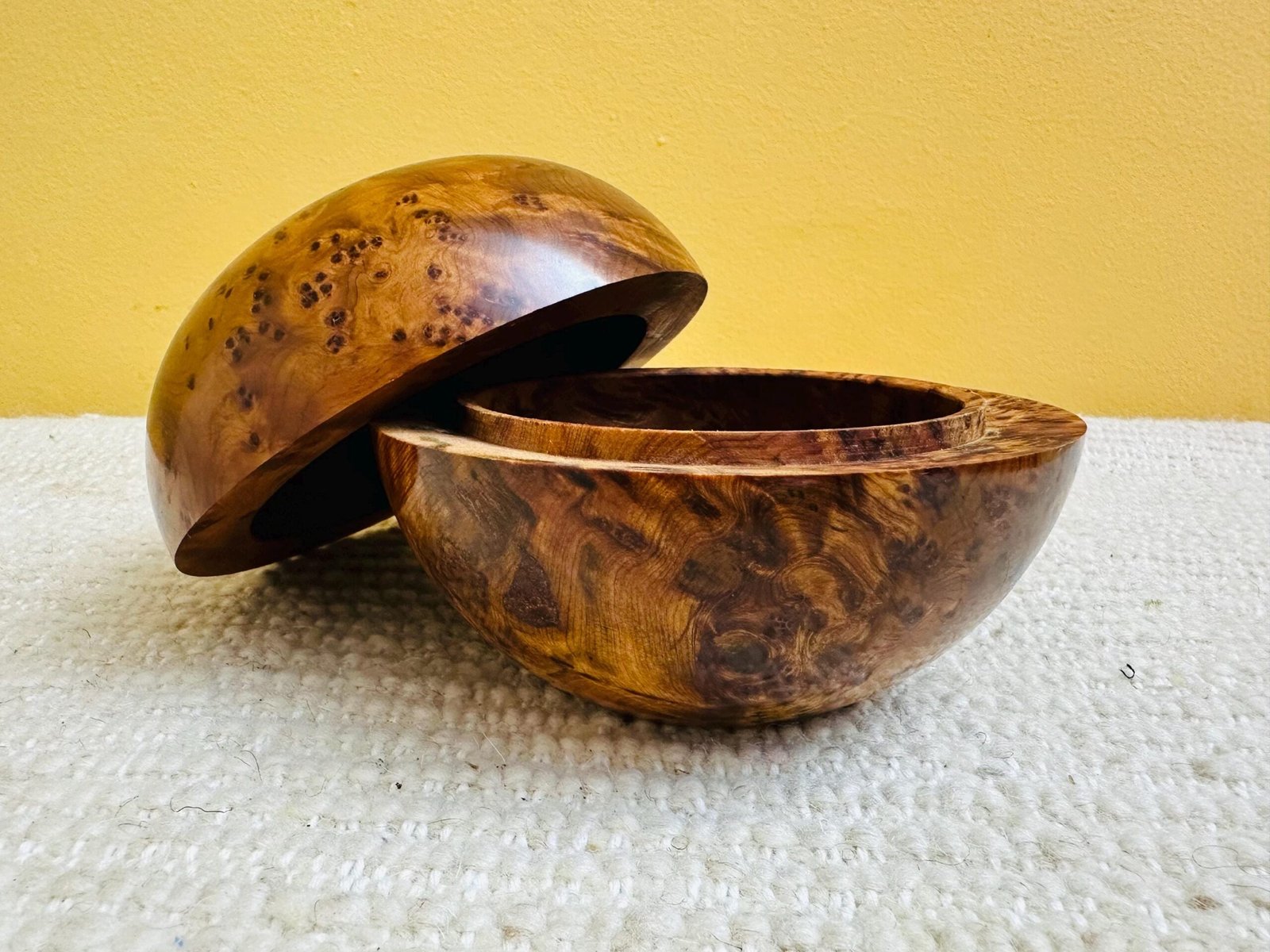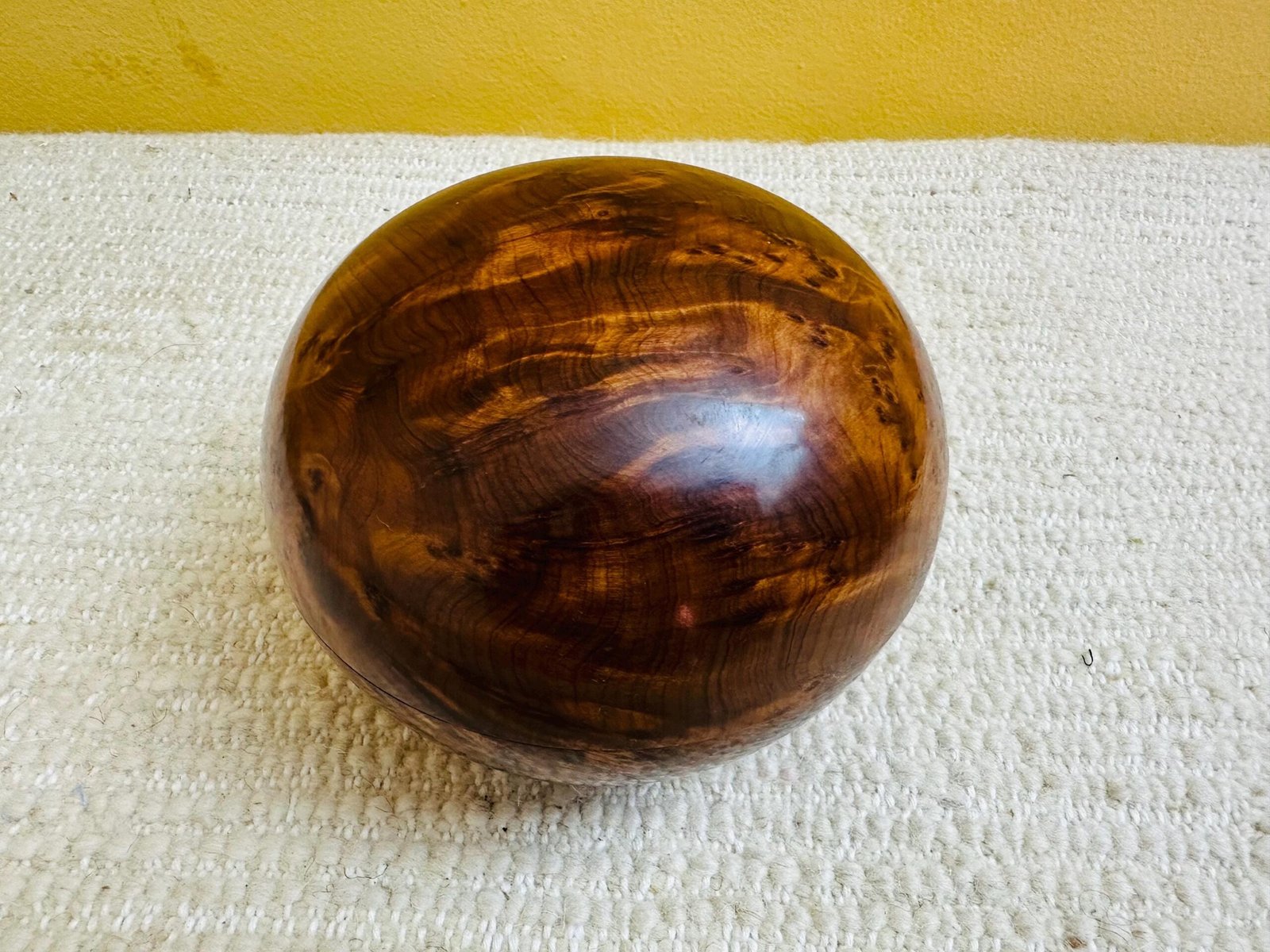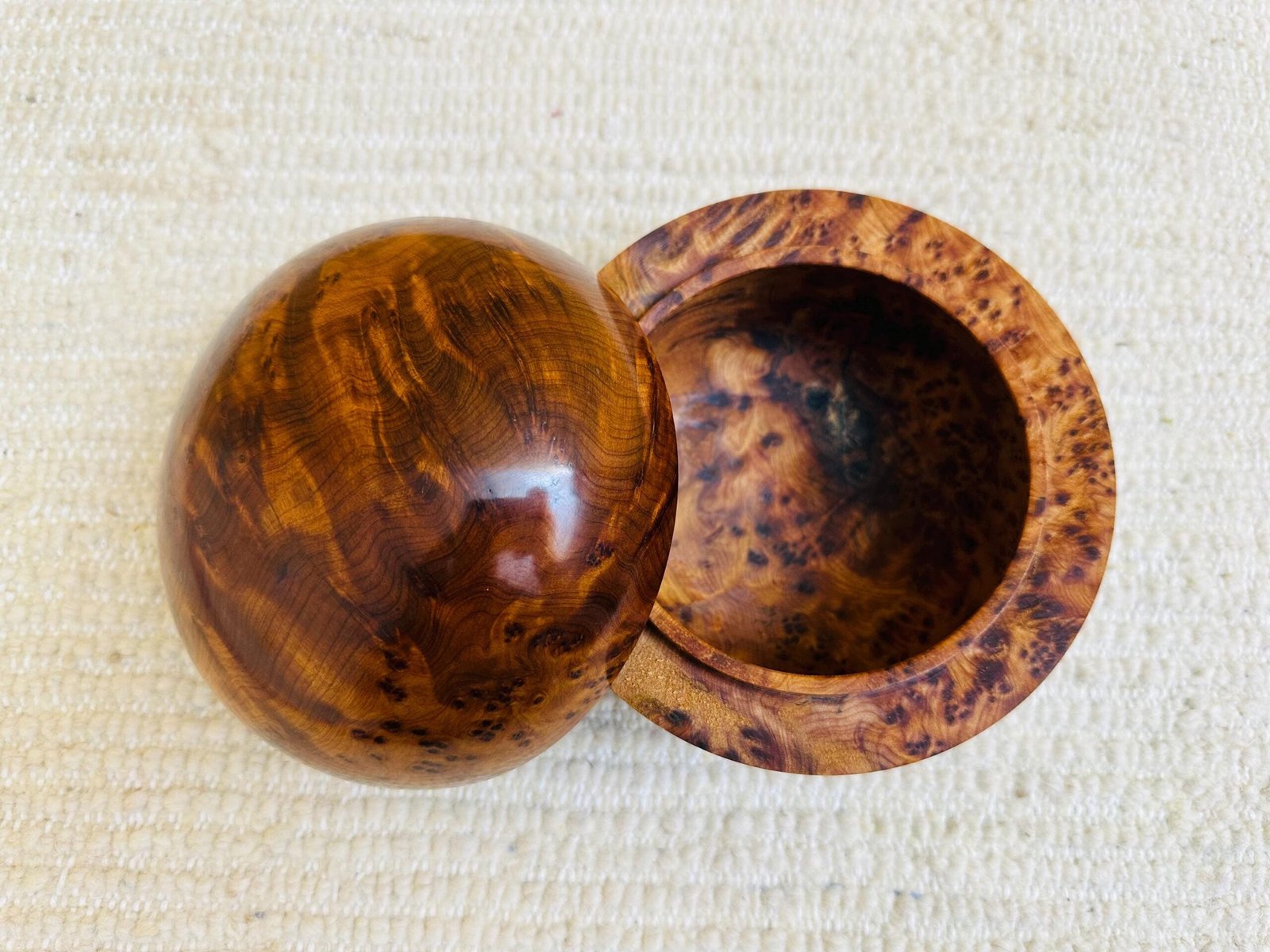 A unique handmade cedar wood sphere jewelry box from Morocco — combining natural wood warmth with artisan craftsmanship.