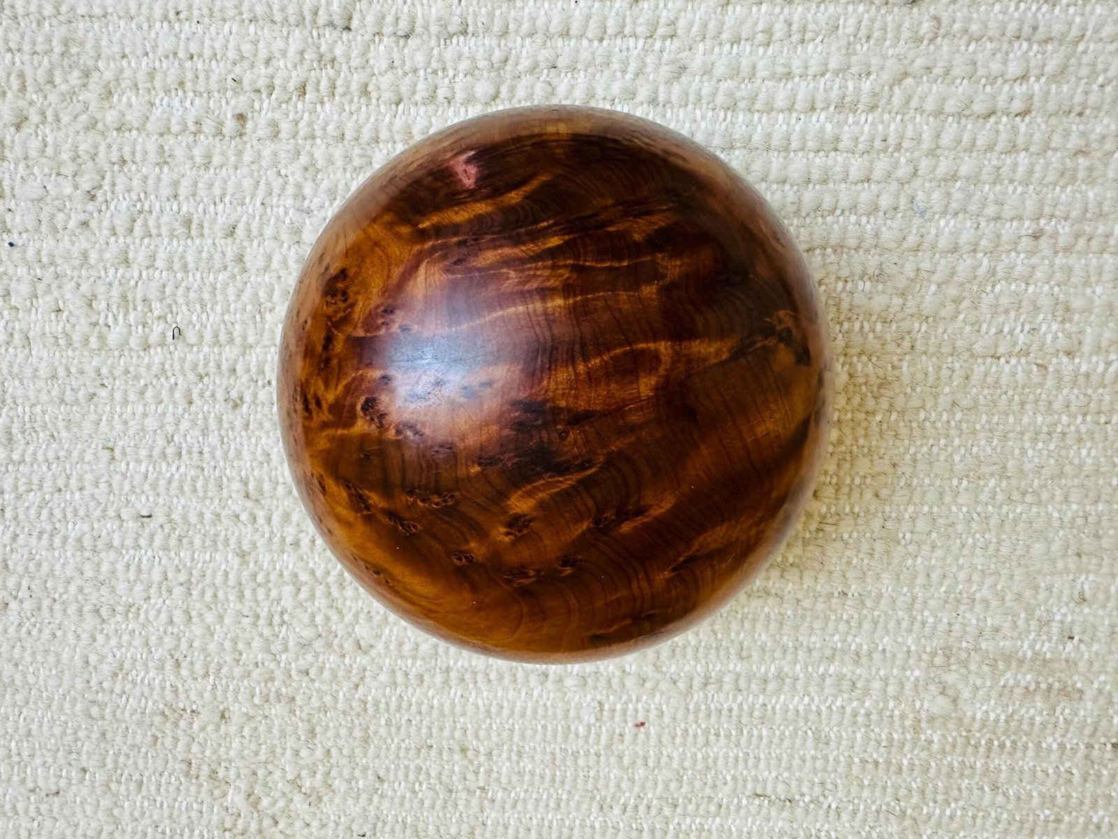 The natural finish highlights the wood’s grain and scent while protecting the surface for lasting durability. As a handmade item, every sphere varies slightly in pattern and tone — a genuine mark of artisan authenticity.