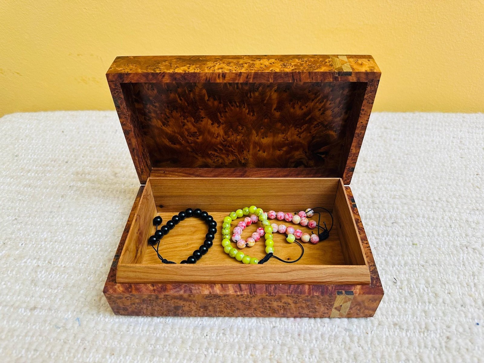 As a handmade item, each box is truly one of a kind — variations in wood grain and inlay patterns reflect its artisanal nature and unique character.