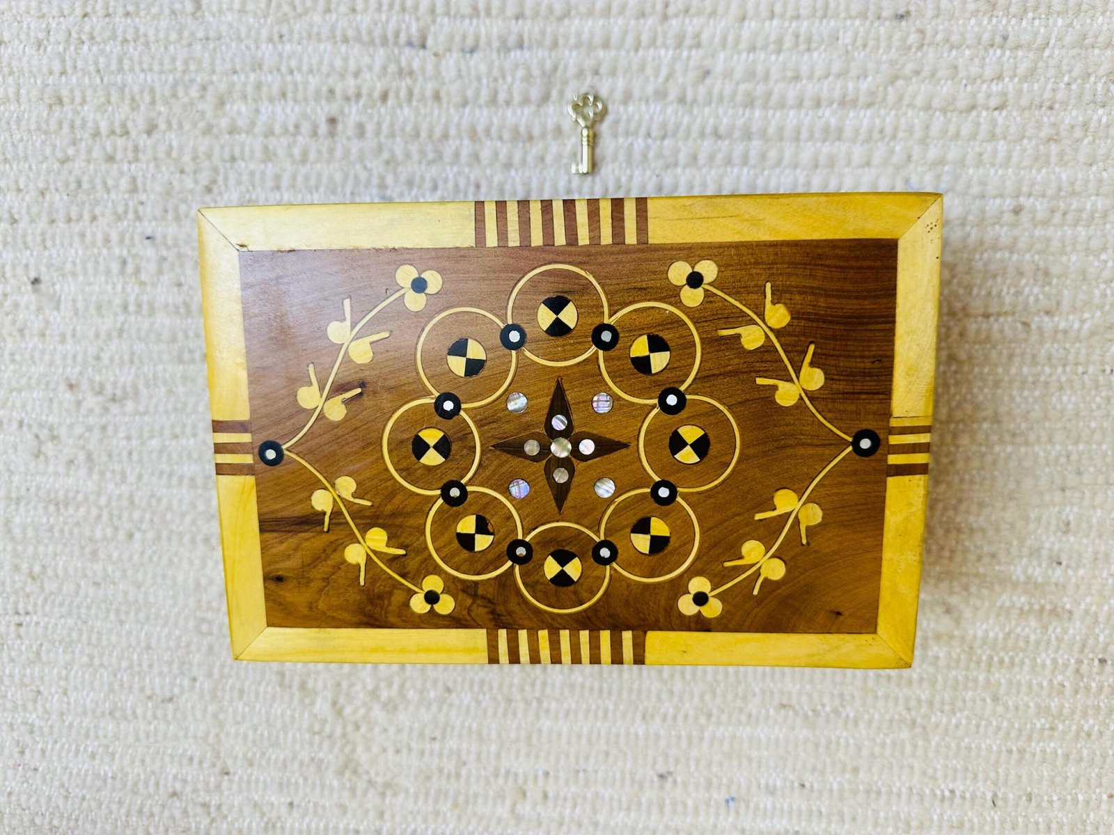 Each box is handcrafted using time-honored techniques passed down through generations. The smooth, hand-polished wood enhances natural tones and protects the surface, while the marquetry inlay showcases exceptional artistic skill.