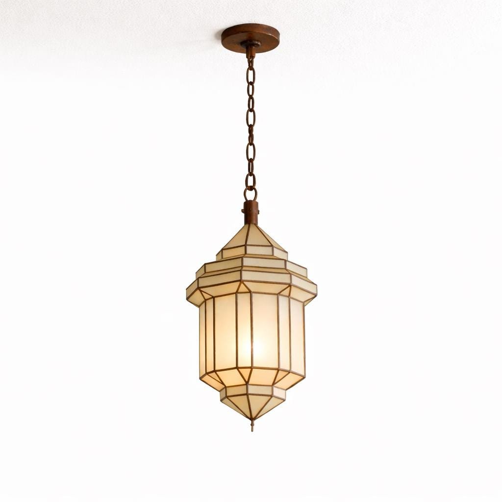 Handmade Moroccan glass chandelier – Pendant glass chandelier – Brass frame ceiling Light