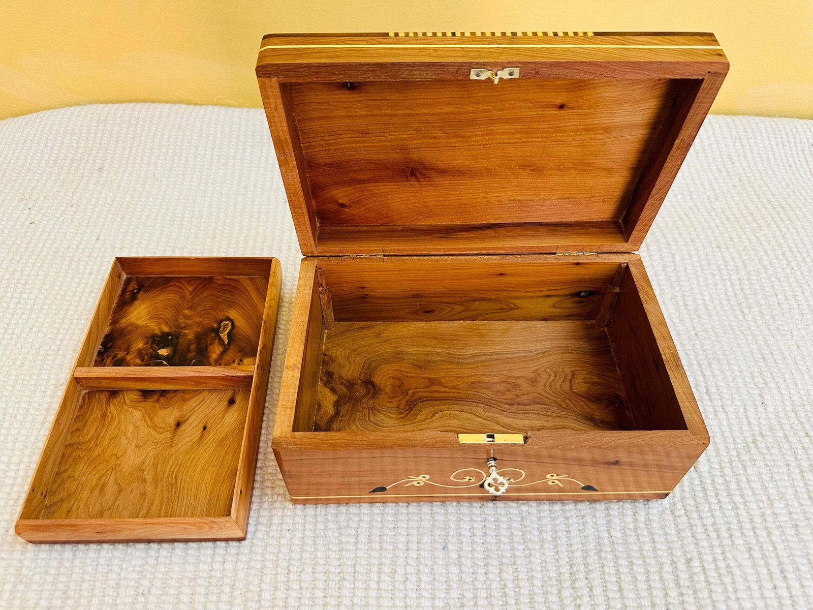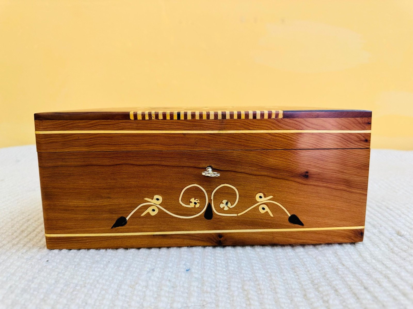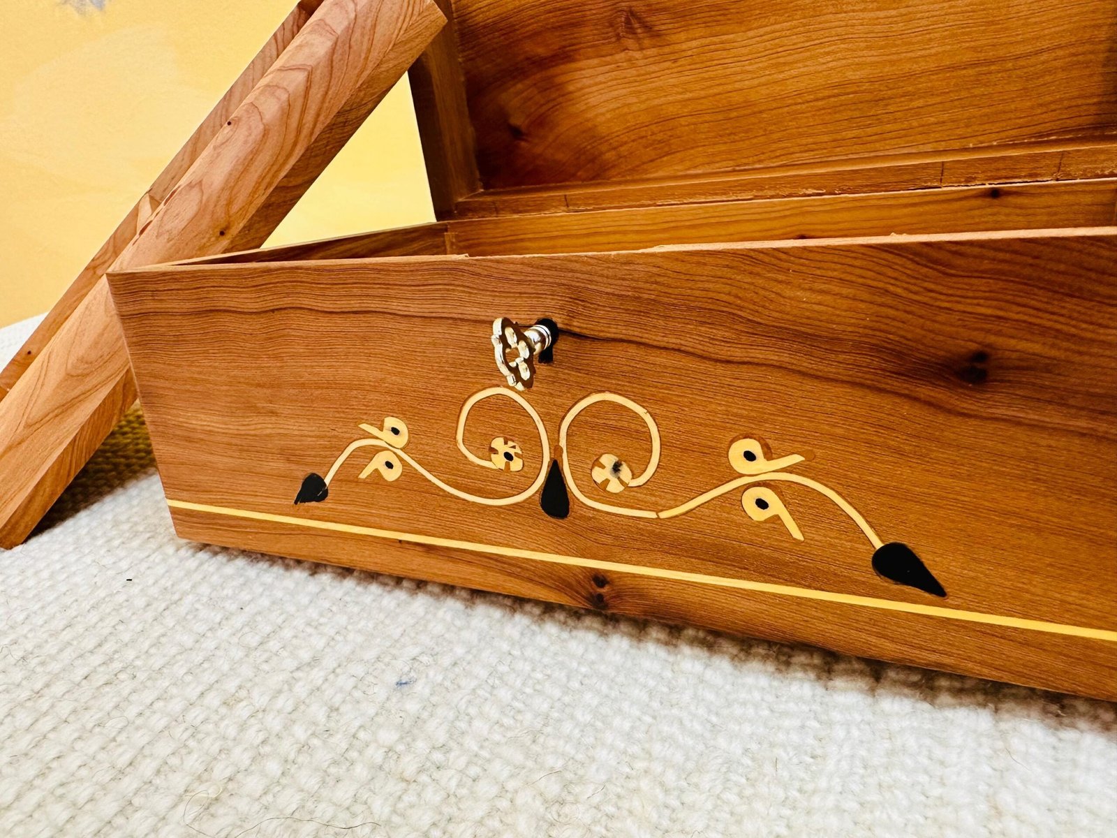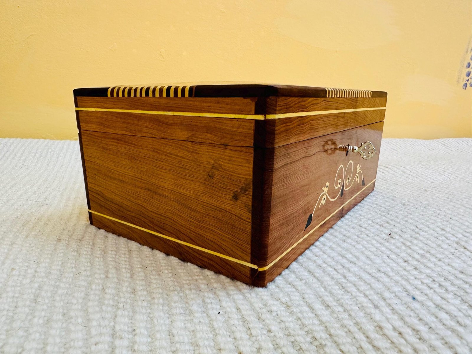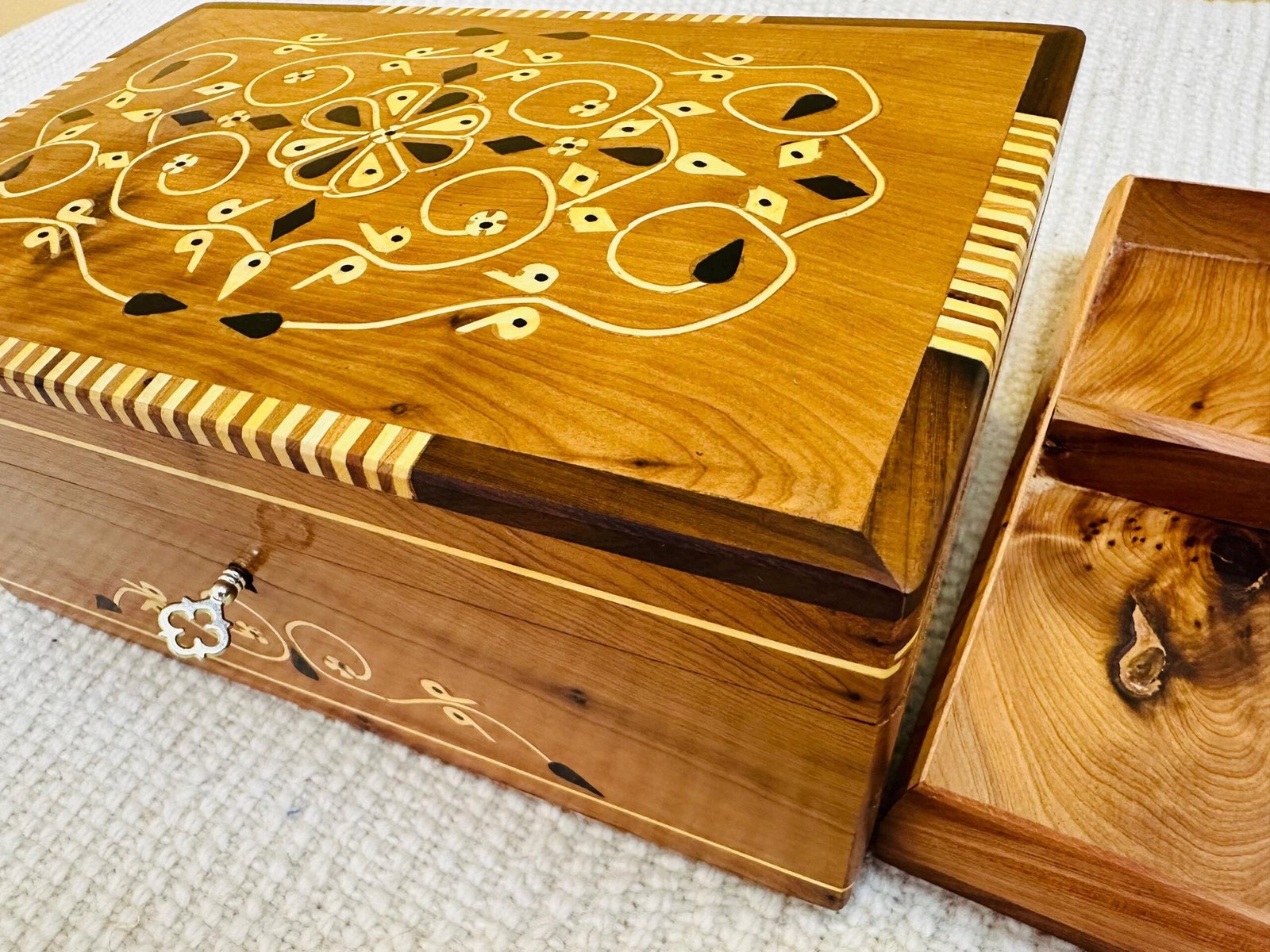 - Features: Extremely detailed multi-wood marquetry, lockable with original key