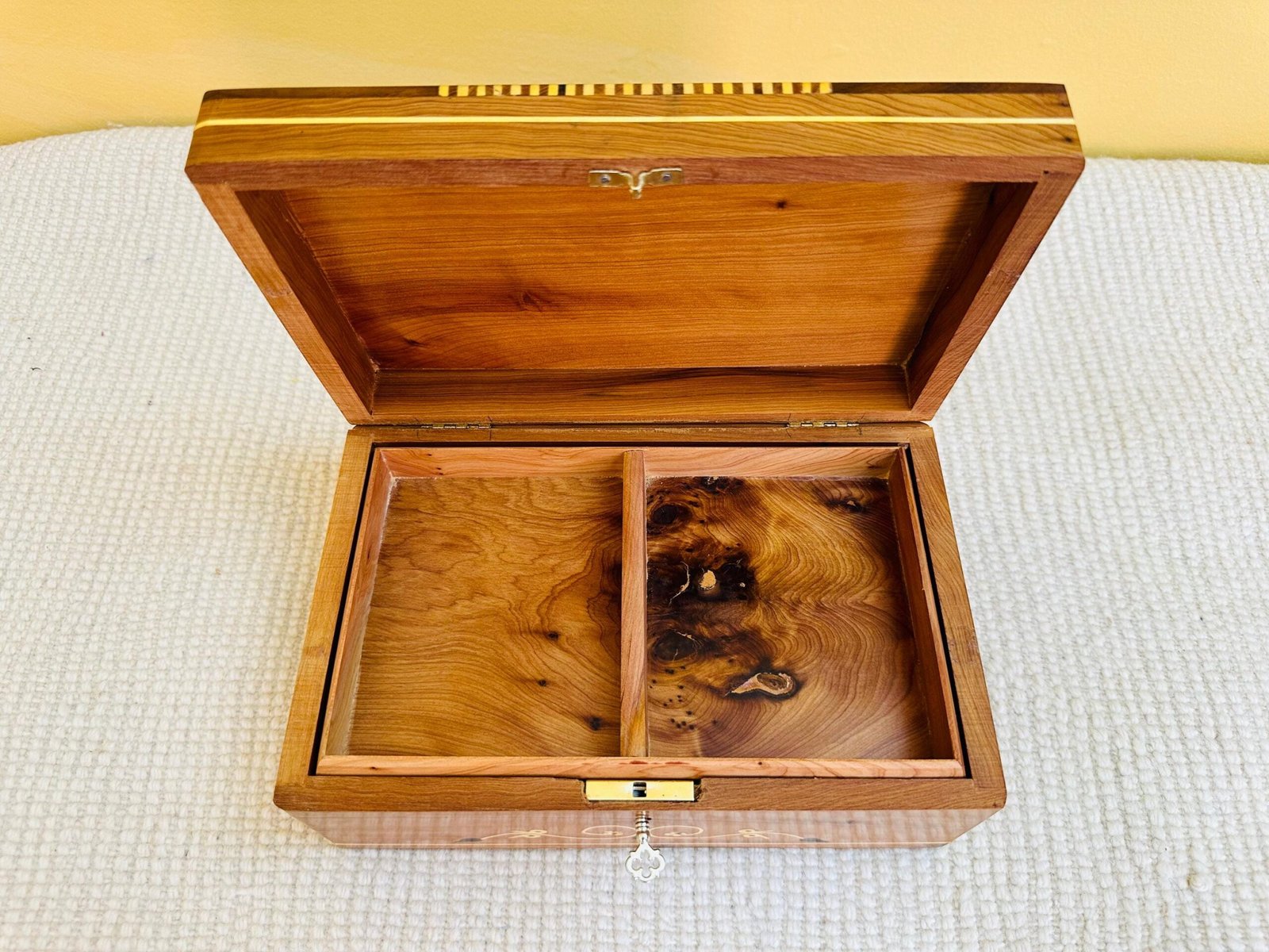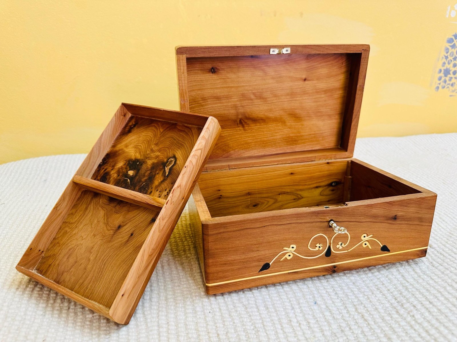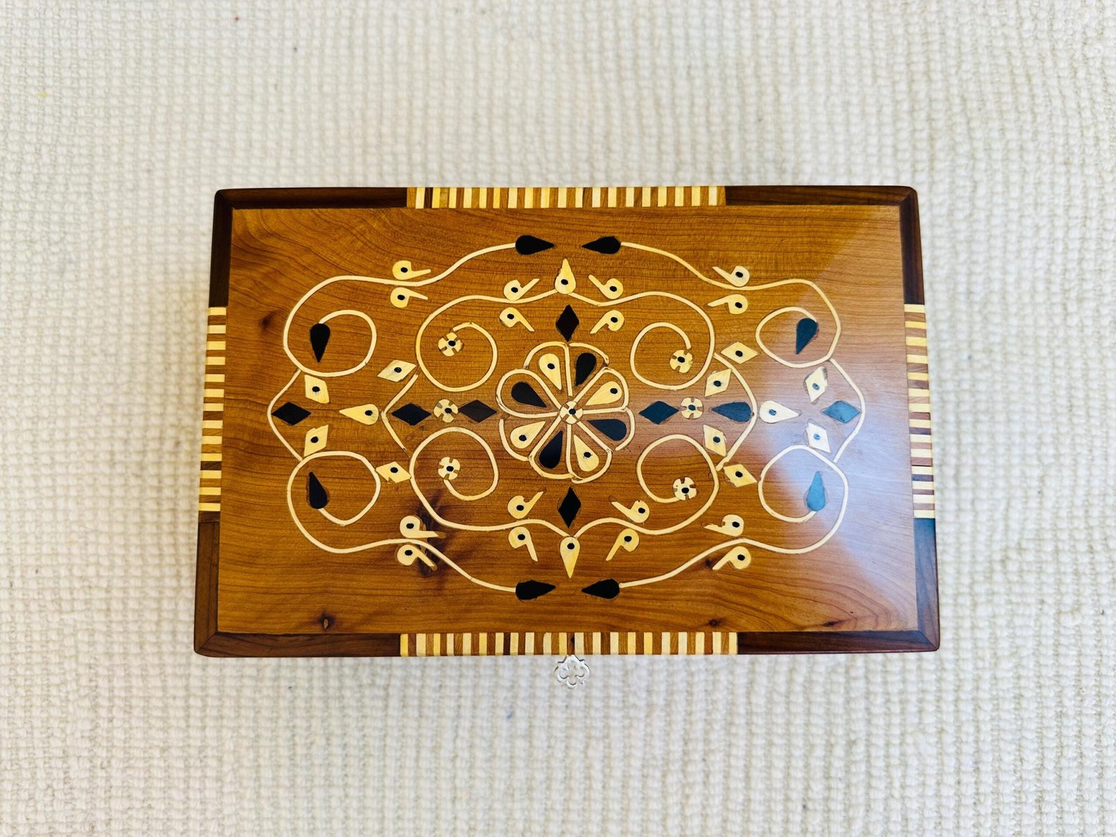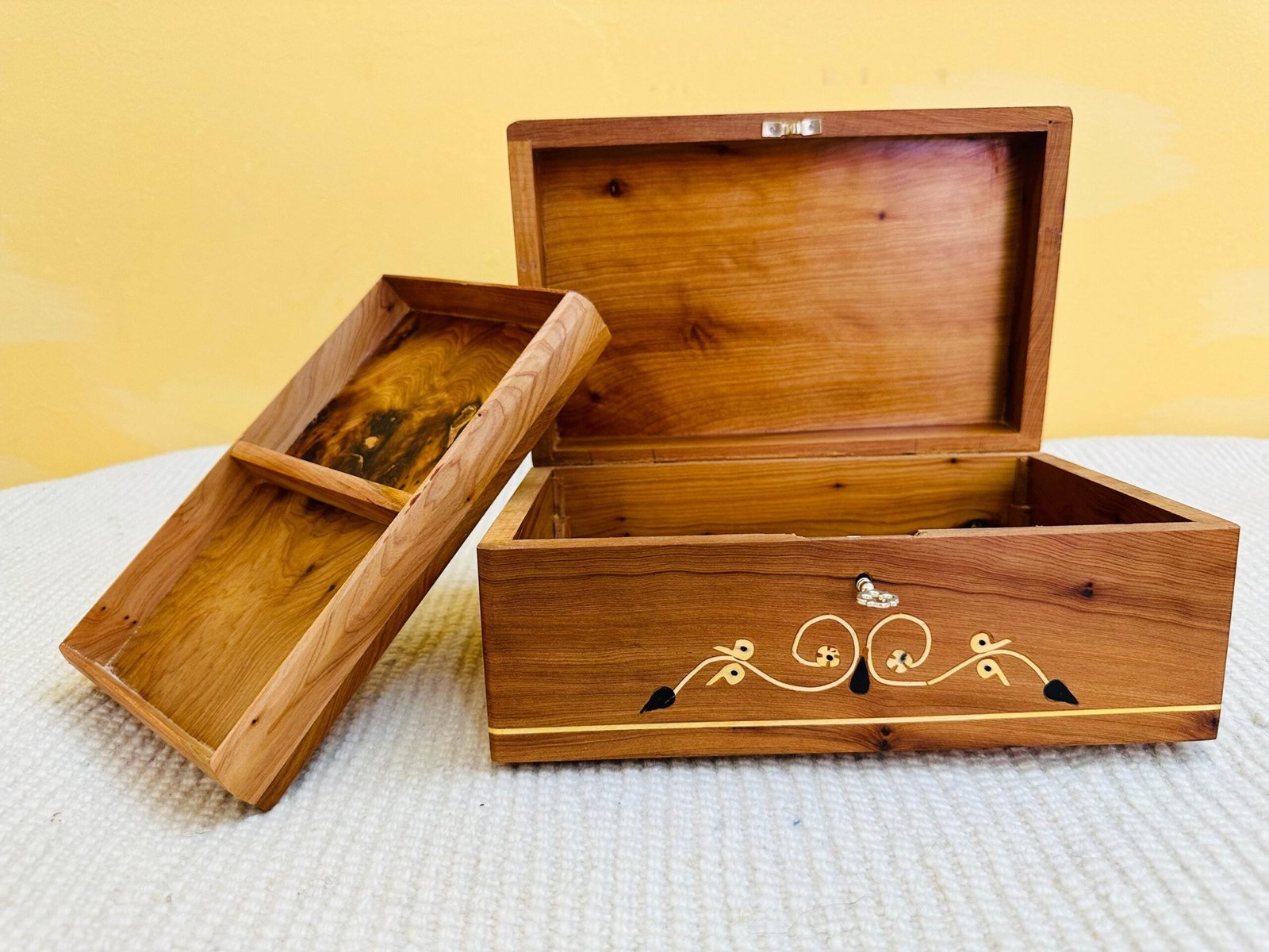As a one-of-a-kind handmade creation, the wood grain and patterns are unique to this box — its individuality is part of its story and charm.