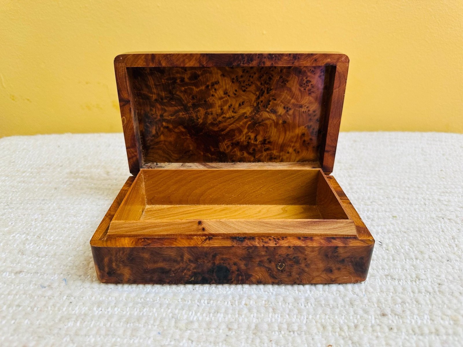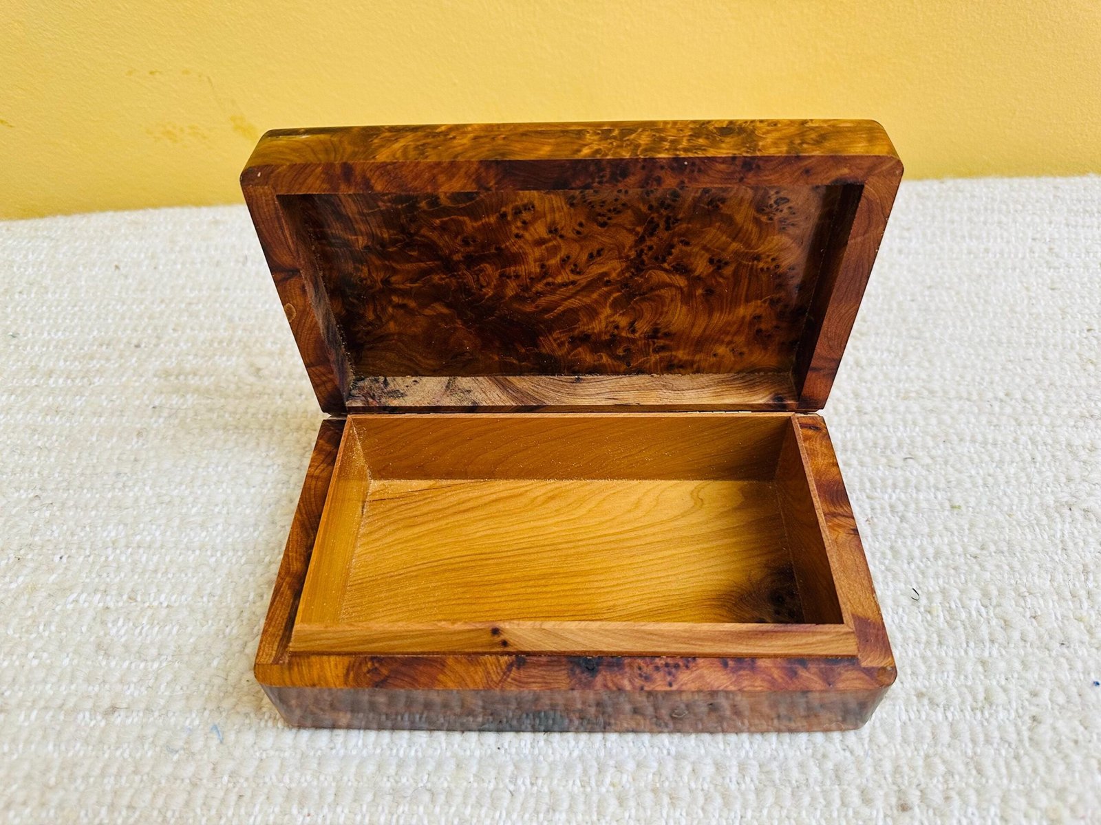 The warm tones and fine grain of thuya wood pair gracefully with fragrant cedar, creating a box that is visually striking and rich in natural character. This decorative piece serves as both a functional storage solution and a timeless accent for your home.