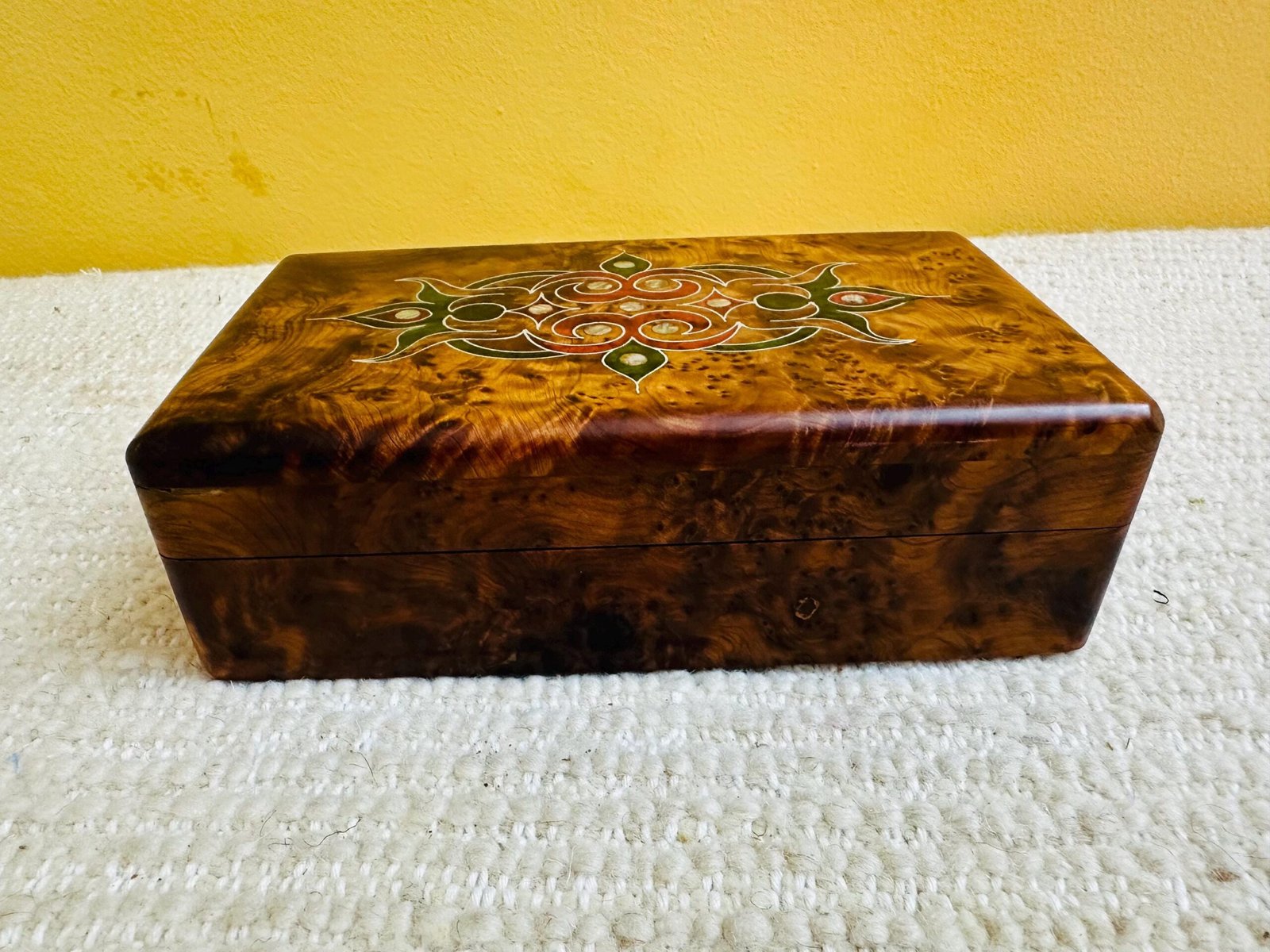This versatile keepsake box is perfect for storing jewelry, personal treasures, and cherished mementos while adding a touch of Moroccan heritage to your décor. As a handmade item, the unique grain and mixed wood patterns ensure each box is truly one of a kind.