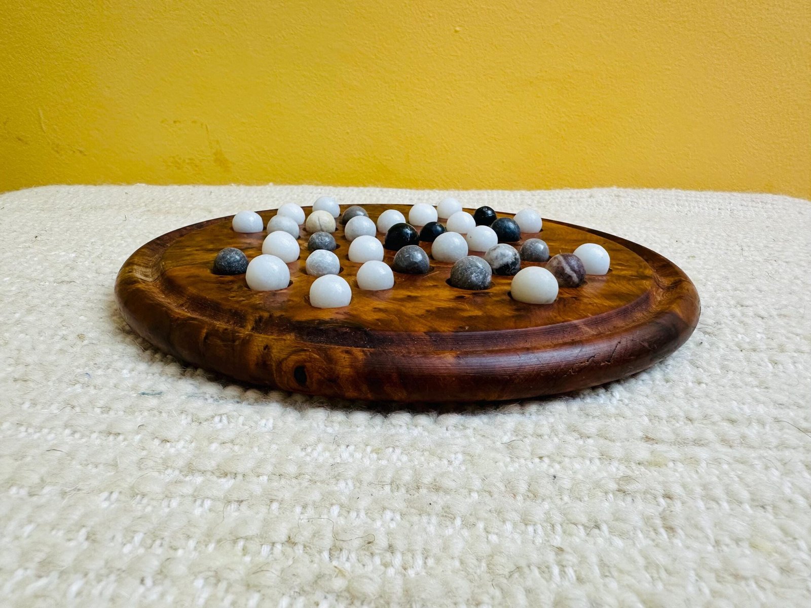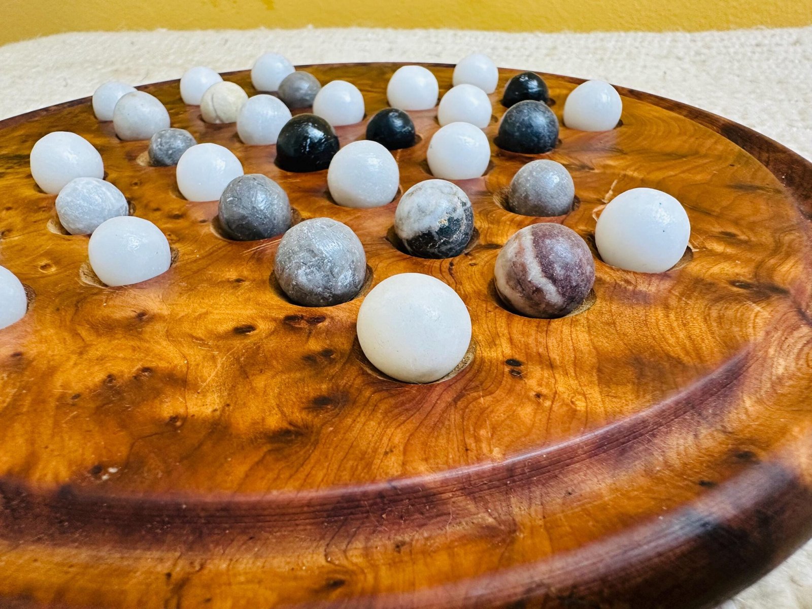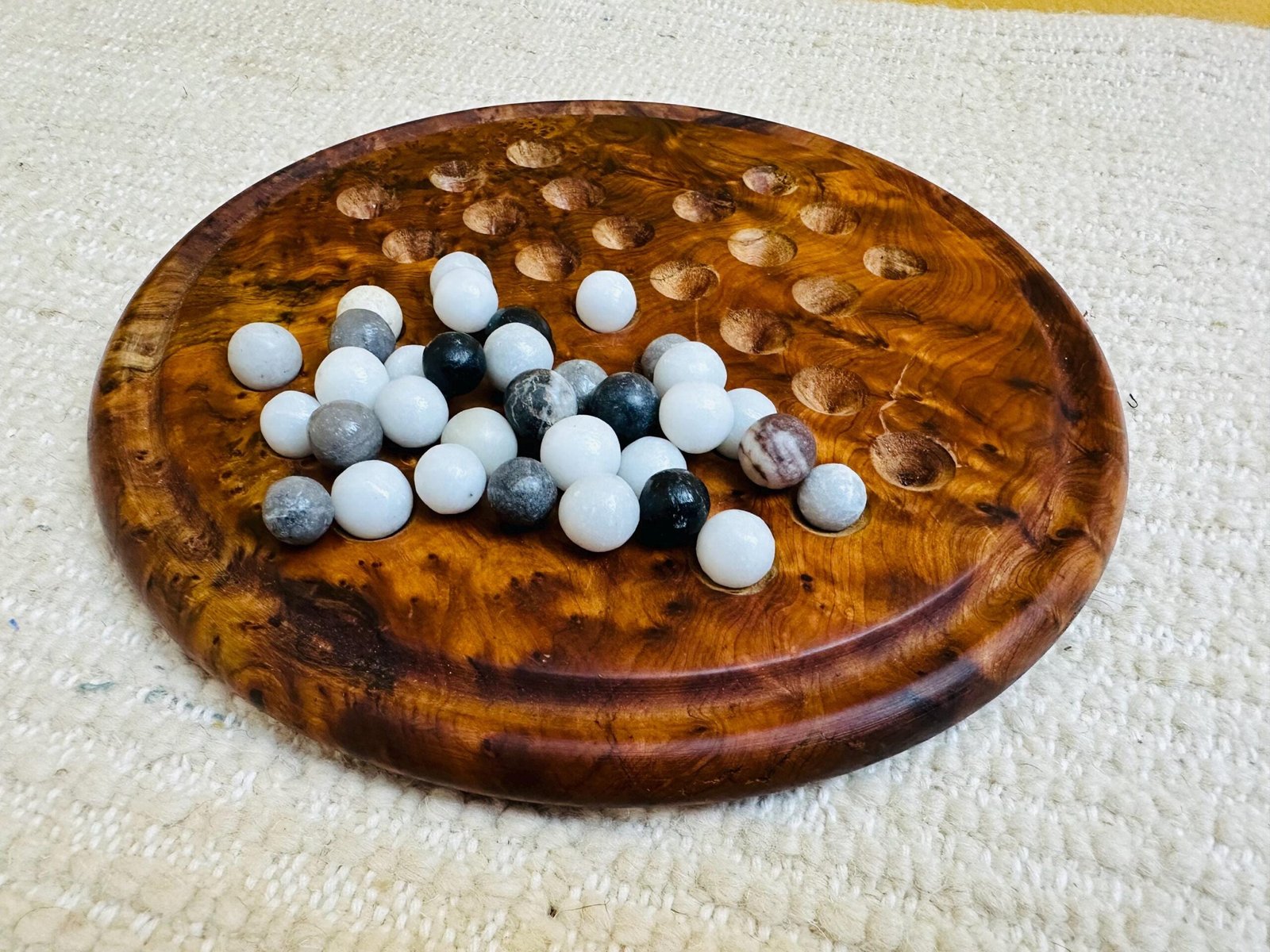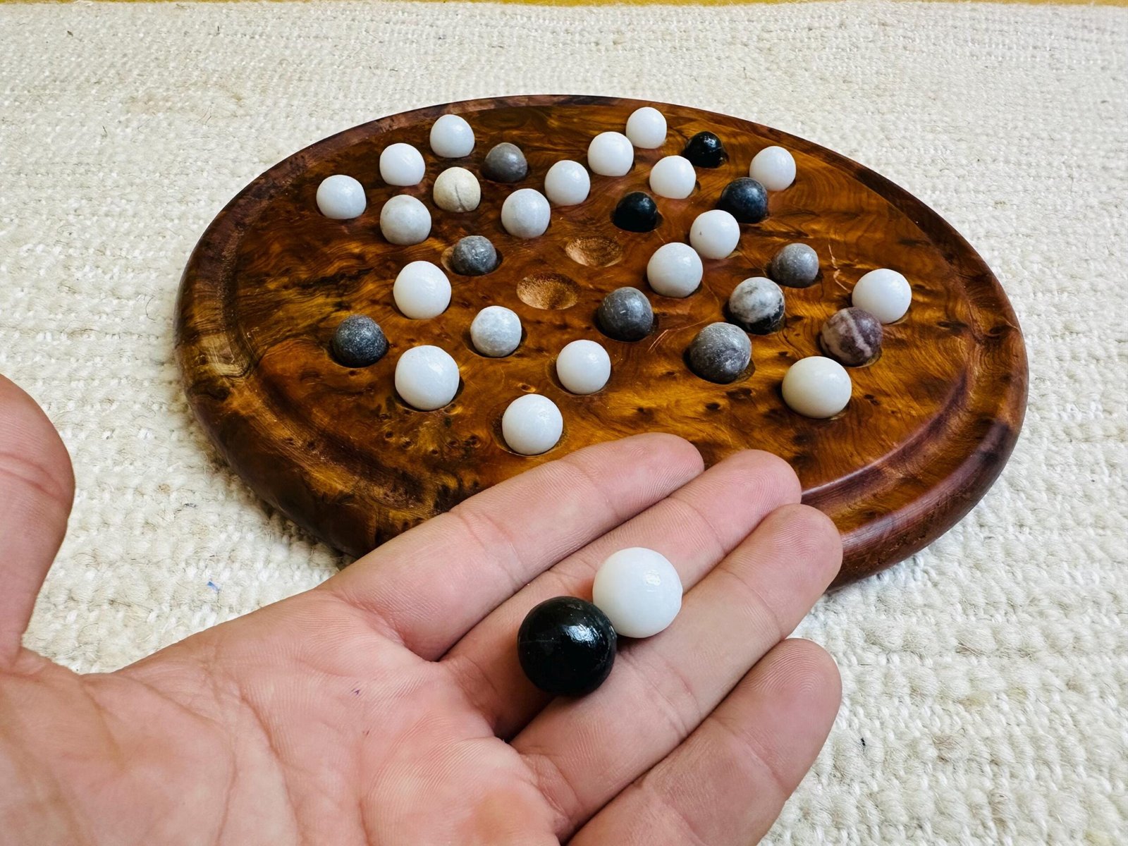 Handmade Moroccan Thuya Wood Solitaire Game Board with Natural Marble Stone Balls