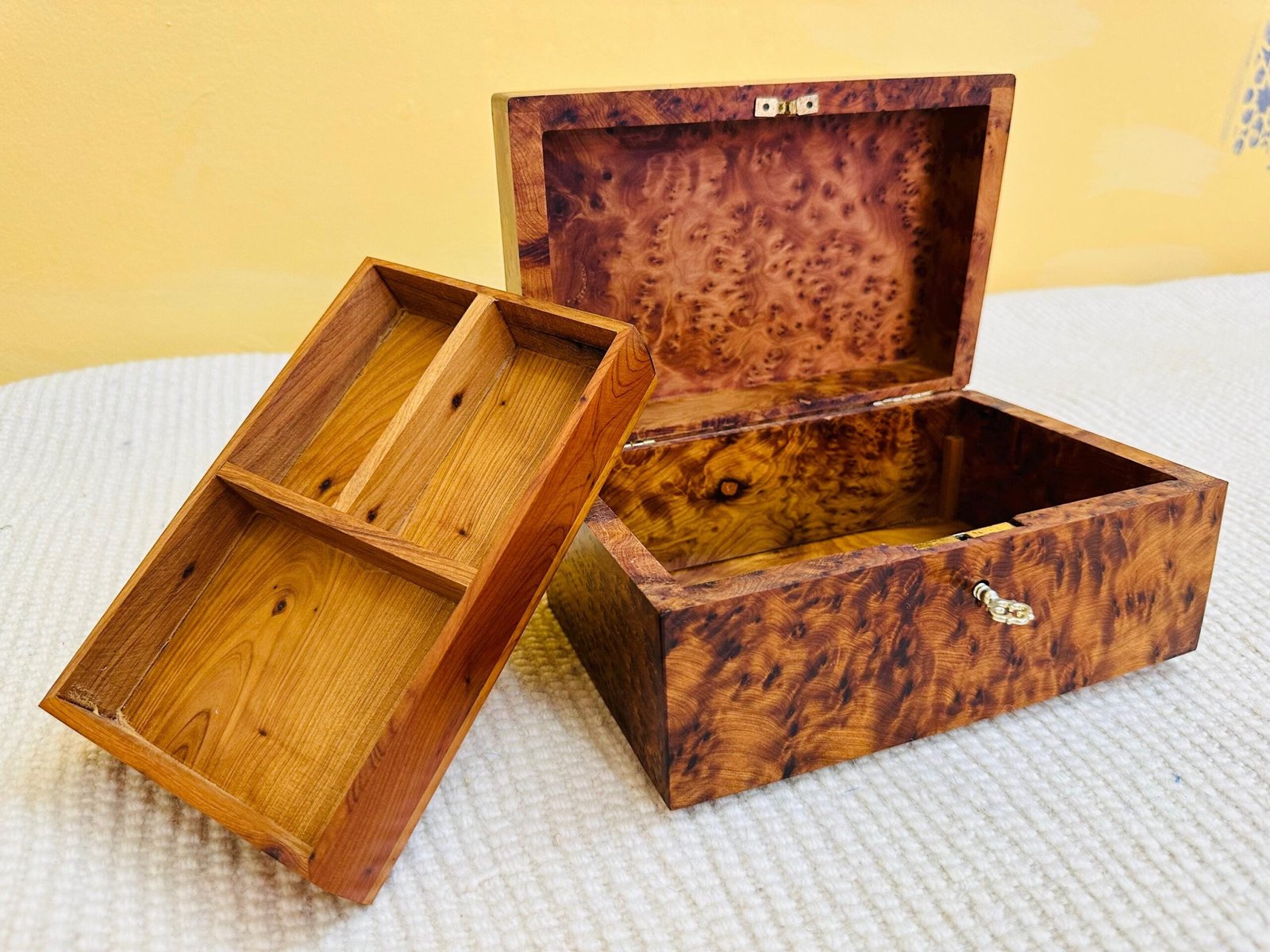 Handmade Thuya Burl Wood Jewelry Box with Lock