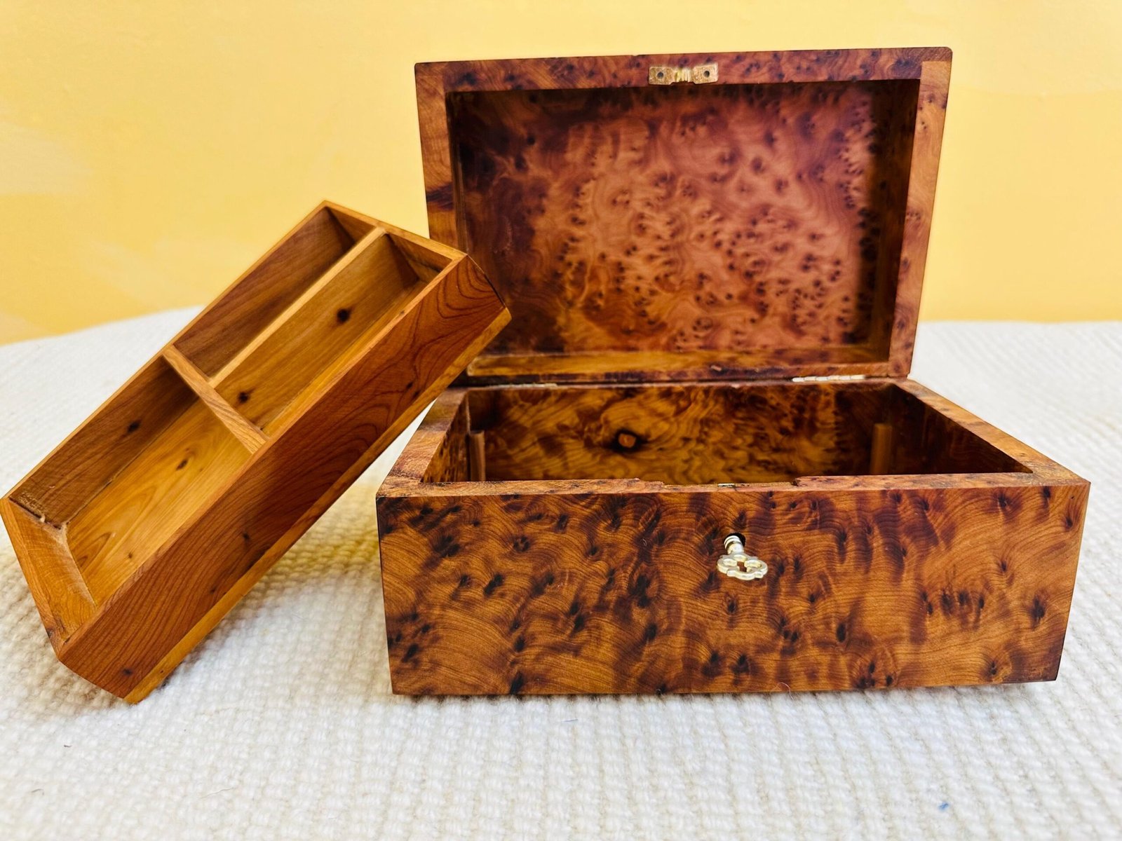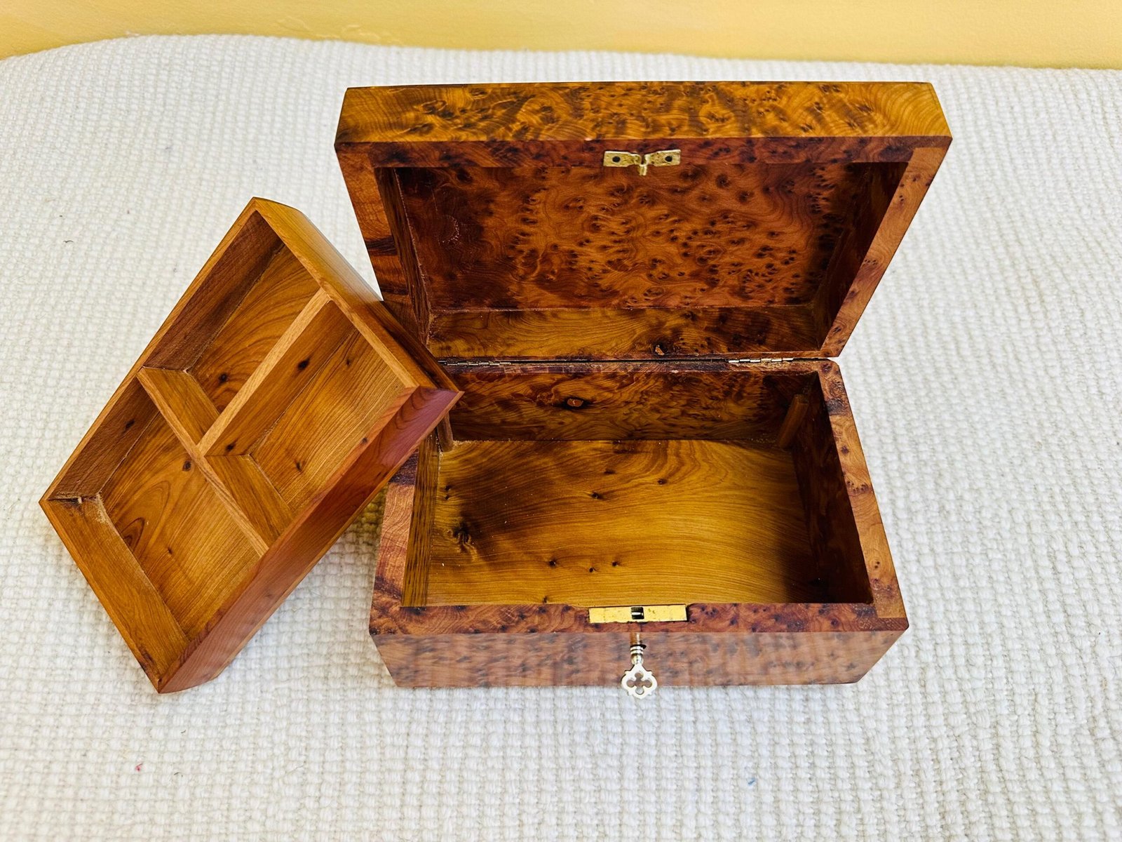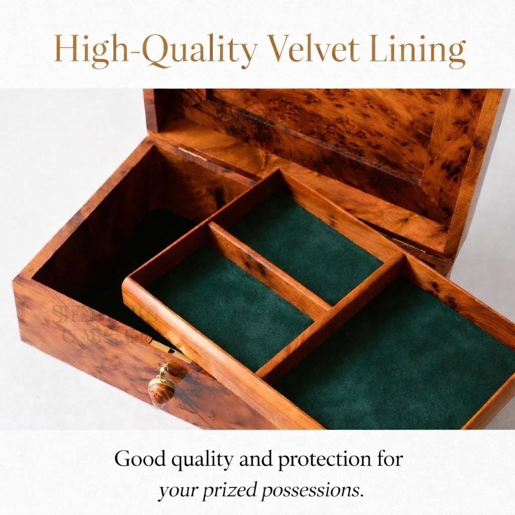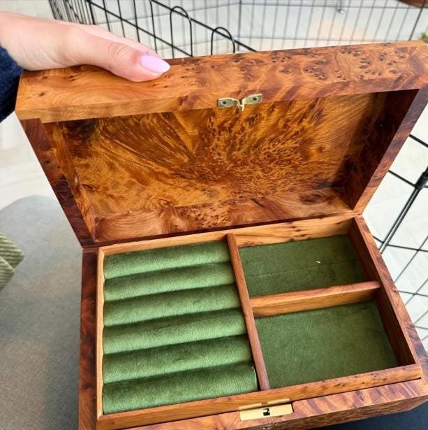 Jewelry box wood burl – Handmade jewelry box with lock – Lined wooden jewelry box – Handmade solid Thuya wood Burl jewellery box