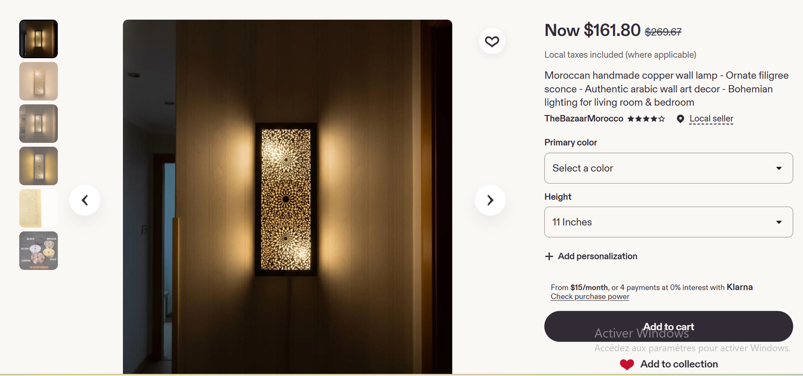 Moroccan handmade copper wall lamp