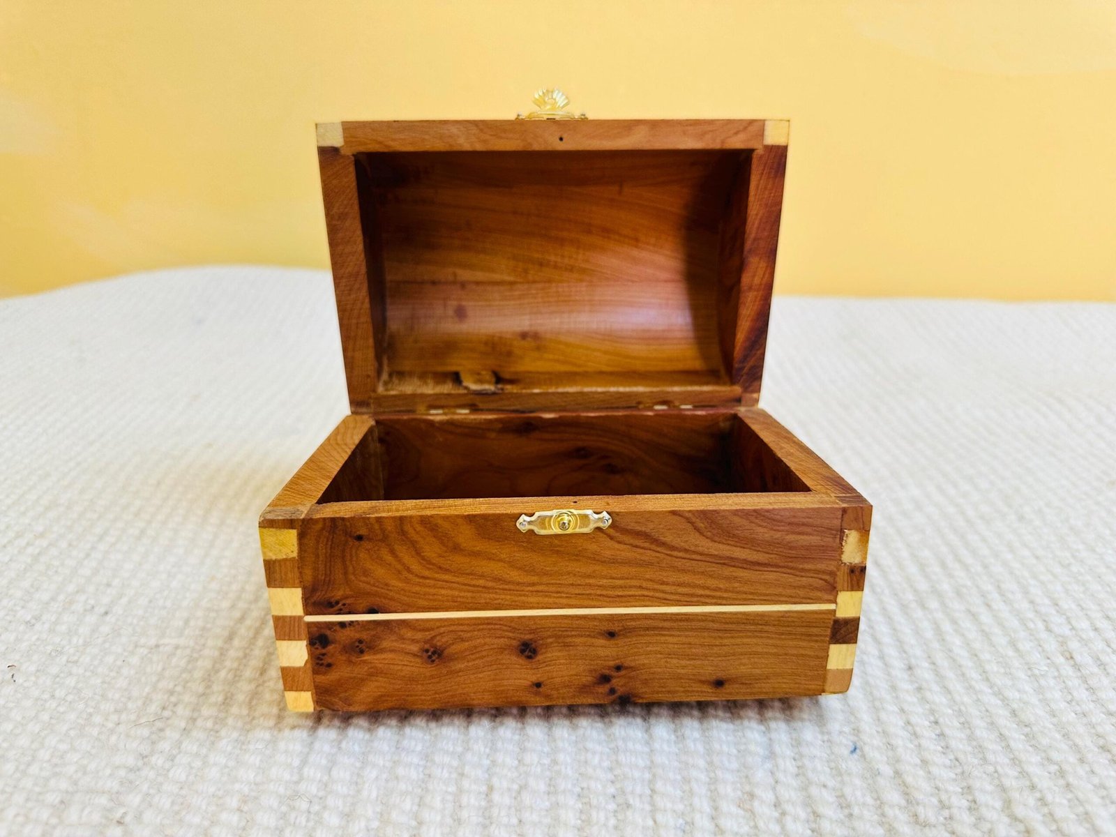 As a one-of-a-kind handmade item, grain patterns and inlay details vary, making each box truly unique.